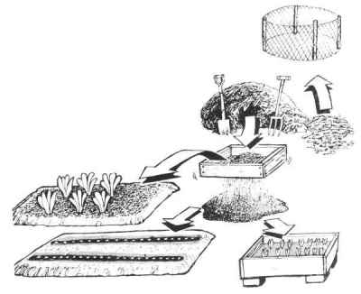 paja, estiércoles, ceniza) y tierra. Es un abono que podemos obtener en forma casera. En pocos meses se convertirá en un abono "rico" con el cual las plantas se alimentarán. |