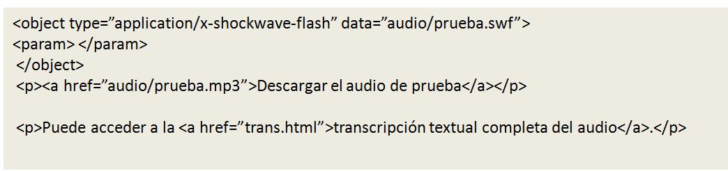 Una vez que se ha proporcionado la transcripción textual, y con el fin de mejorar la accesibilidad del elemento de audio, es igualmente recomendable abordar progresivamente los aspectos relativos a la interacción (control de reproducción, uso independiente de dispositivo de entrada y tabulación adecuada).